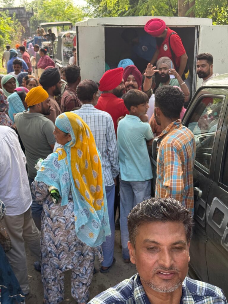 On 29th August 2025, at the villages of Gharram and Vadda Sabhran in Tarn Taran district, Dr. Kanwar Vijay Pratap Singh and the Chief Sevadar of Pingalwara, Dr. Inderjit Kaur, along with their full team, reached the villages and distributed bottled water, 1 sack of sugar, 1 sack of rice, 2 sacks of potatoes, 1 quintal of flour, 1 tin of ghee, salt, and tea leaves on the first day.